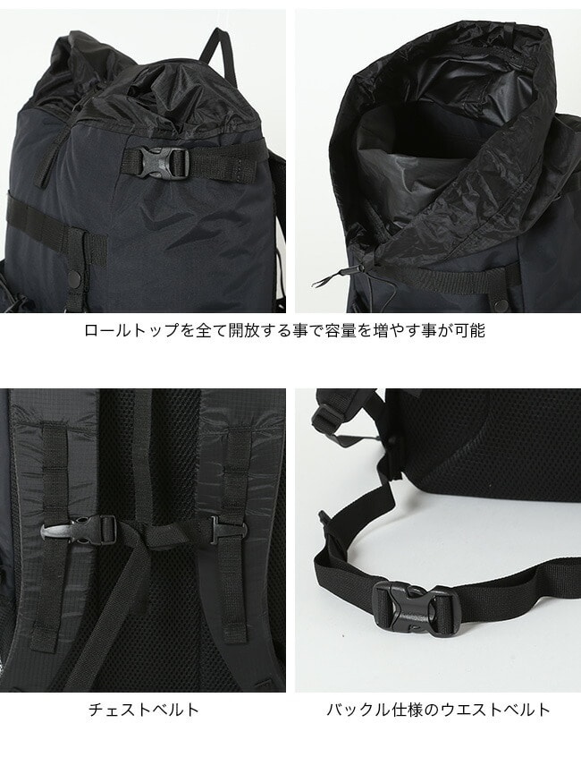 容量は35Lでロールトップを全て開放する事で容量を増やす事が可能です。フロントポケット前にバンブーストラップを配置しており、上着などをかける事ができます。