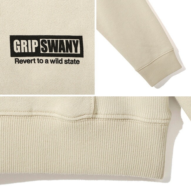 左胸のGRIP SWANY BOX LOGOと背面のGLOVE LOGOが、シンプルな中にアクセントを添える一着です。