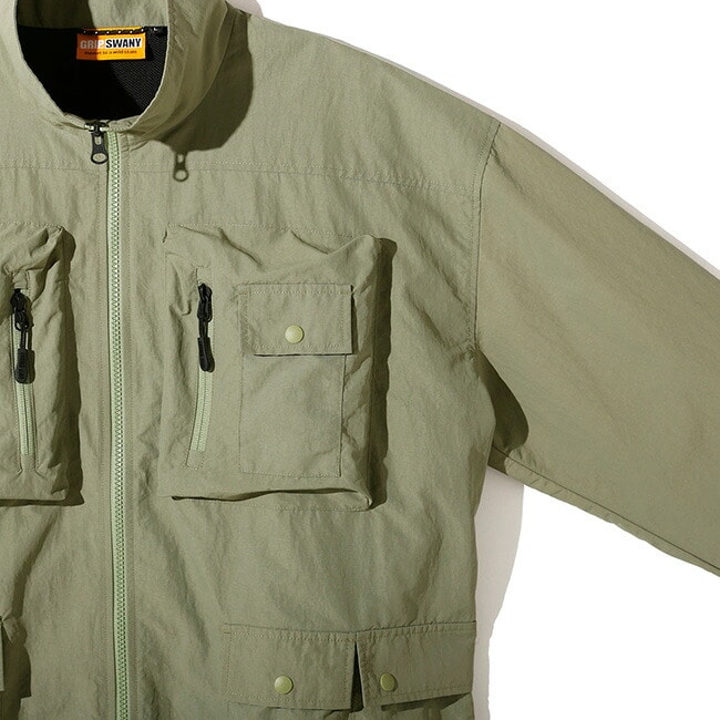 大小さまざまなマチ付きポケットを配置し、優れた収納力を備えたスタンドカラージャケット
