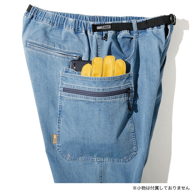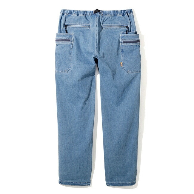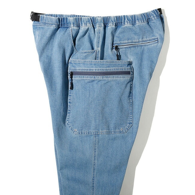 デニムライクな見た目でありながら、伸縮性とやわらかな風合いを兼ね備えており、動きやすくリラックス感のある着用感が魅力。右腰骨の後ろには、収まりがよく座った際にも干渉しにくいスマートフォンポケットを配置しました。
