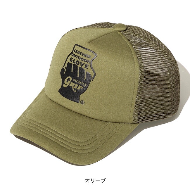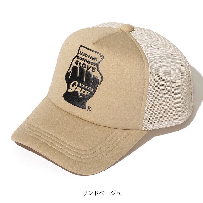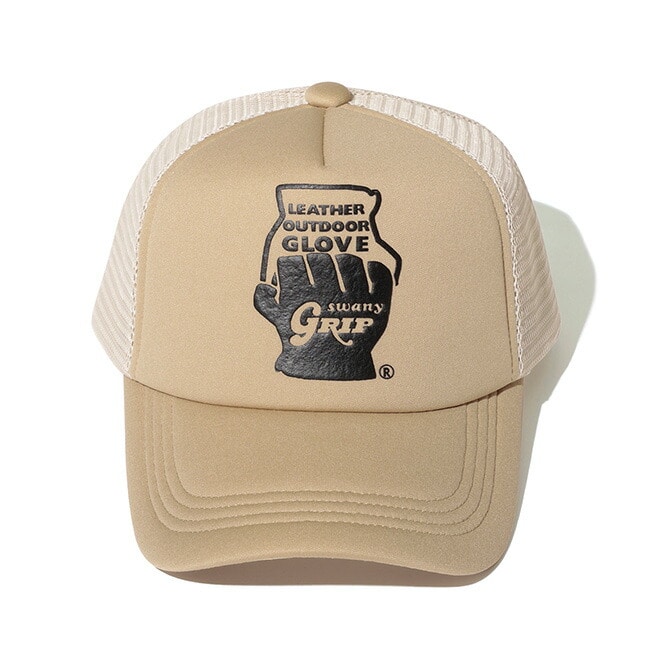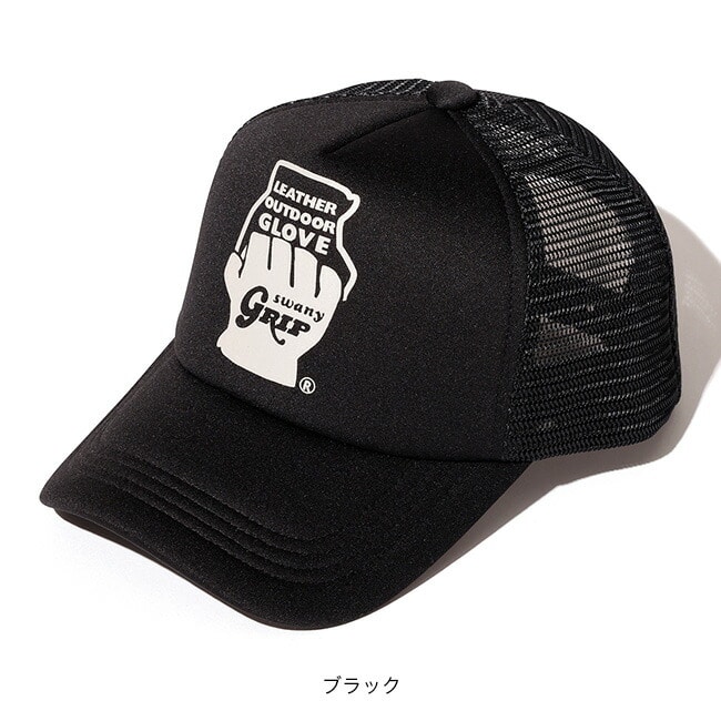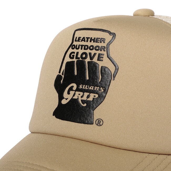 フロントにGRIP SWANY GLOVE LOGOを配置した、5パネルトラッカーキャップ