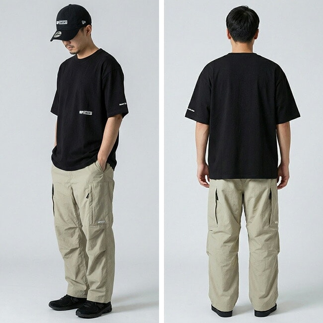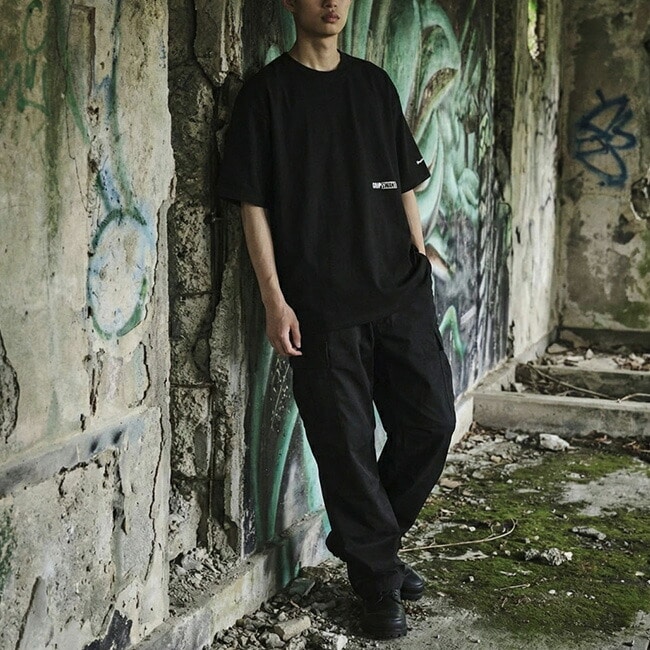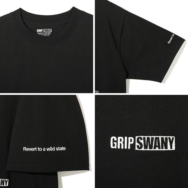 ゆったりとしたワイドな身幅で、1枚で着ても自然と様になるバランスの良いシルエットが魅力です。NEW ERAのキャップと同じ「GRIP SWANY BOX LOGO」を左胸に、そして「Revert to a wild state」のロゴ刺繍を左袖にあしらい、さりげないアクセントをプラス。