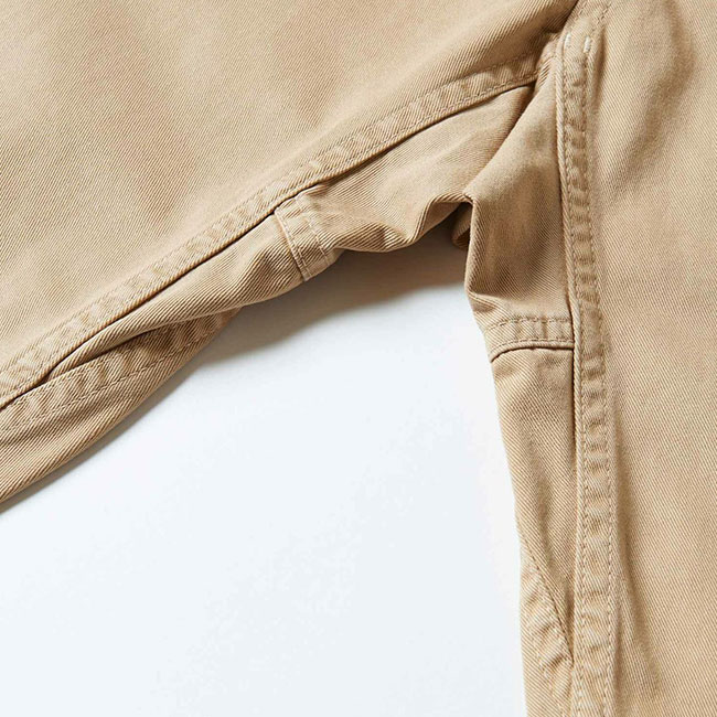 クラシックなGパンツとヴィンテージのファティーグパンツを組み合わせたようなデザインが特徴。元々日本でデザインされたこのパンツは、ウエストと太もも周りにゆとりをもたせながら、膝から裾に向かってテーパードをかけて、クロップドデザインですっきりとした印象に仕上げています。