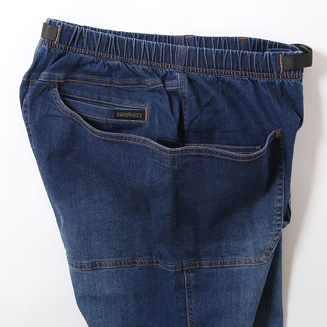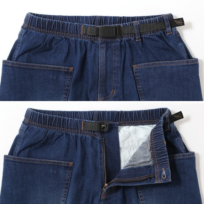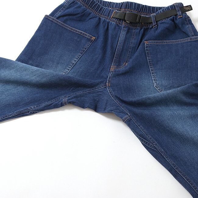 グラミチらしいウェビングベルト仕様でウエスト調整が簡単に行え、ガゼットクロッチによって脚の可動域も広く確保。
