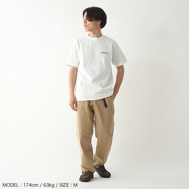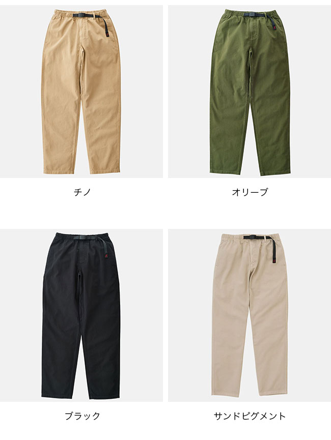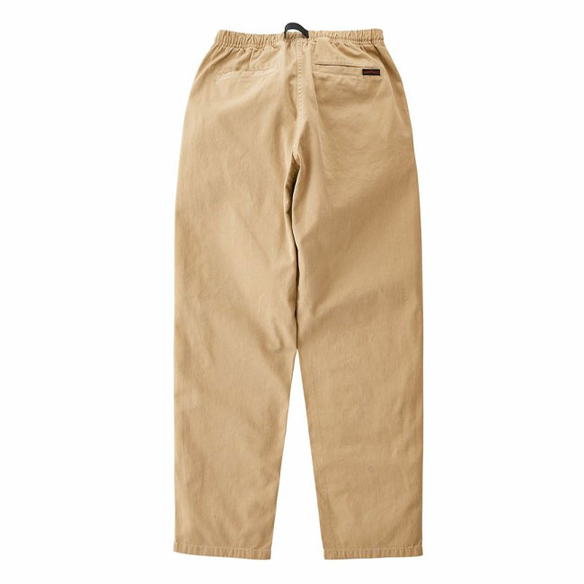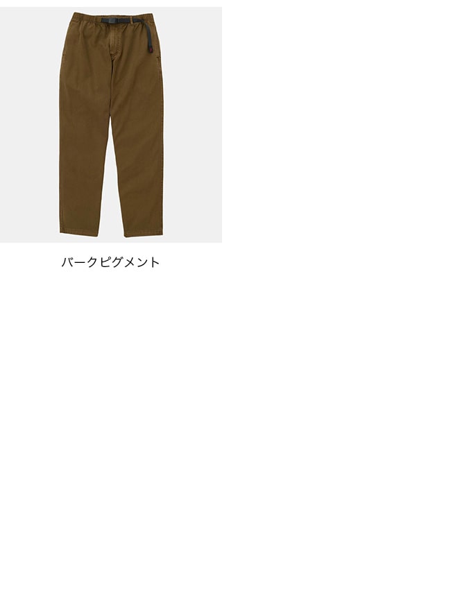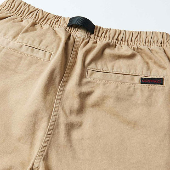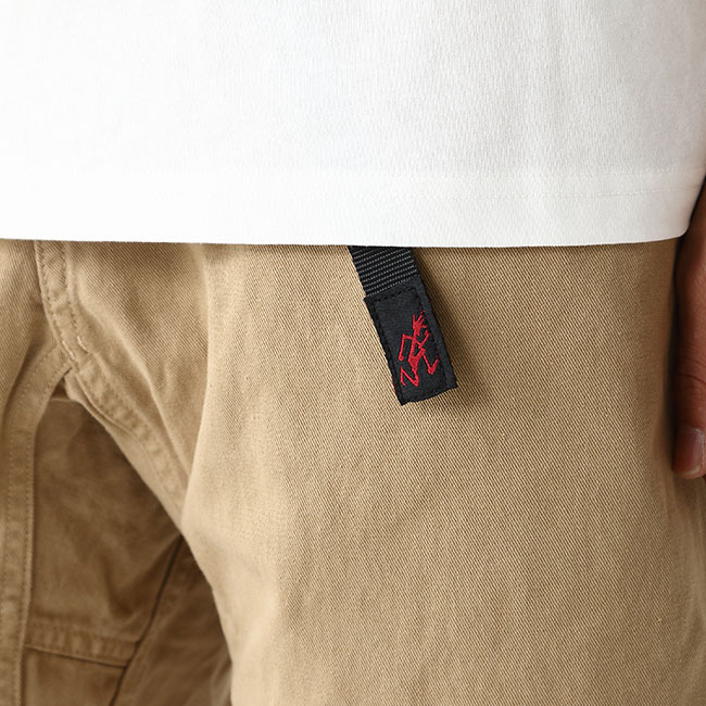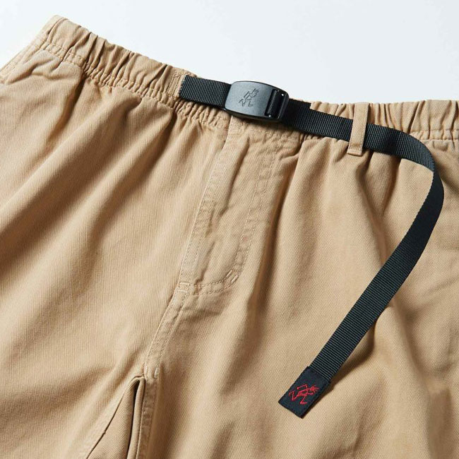 素材には耐久性のあるエココットンツイル素材を使用。動きやすさを追求した設計で、180度の脚の可動域を確保するGramicci独自のダイヤモンドガゼットクロッチを採用し、ウエストにはナイロン製のウェビングベルトとゴム仕様を組み合わせ、快適なフィット感を実現しています。