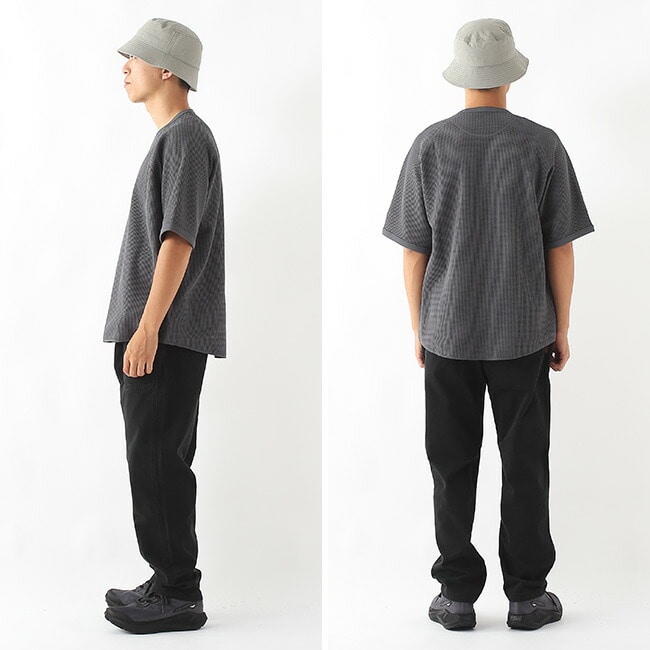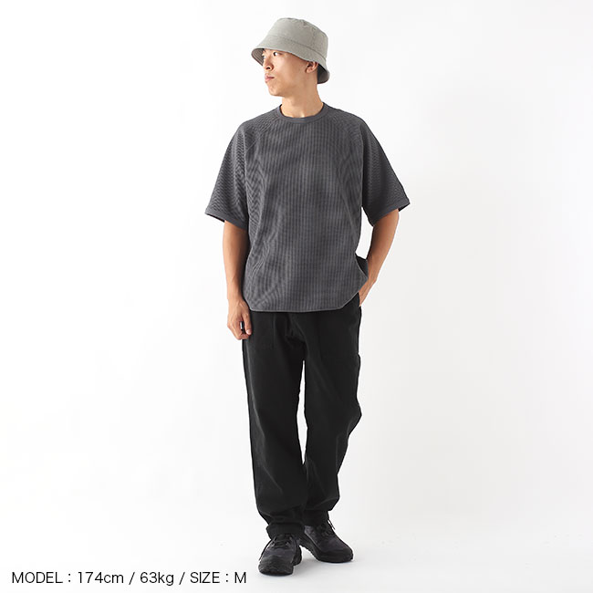 定番商品「LOOSE TAPERED PANT」は、股下サイズが一定に設定されており、くるぶしが出るようなすっきりとしたサイズ感ですが、この「RIDGE PANT」はサイズ毎に股下サイズが調整されているため、くるぶしが隠れる仕様になっています。