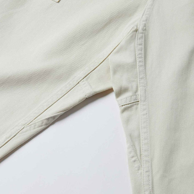 耐久性が高く、ハリコシのある、激しい動きにも耐えるオーガニックコットン使用のコットンツイルを使用し、雰囲気のある表情に染め上げています。
