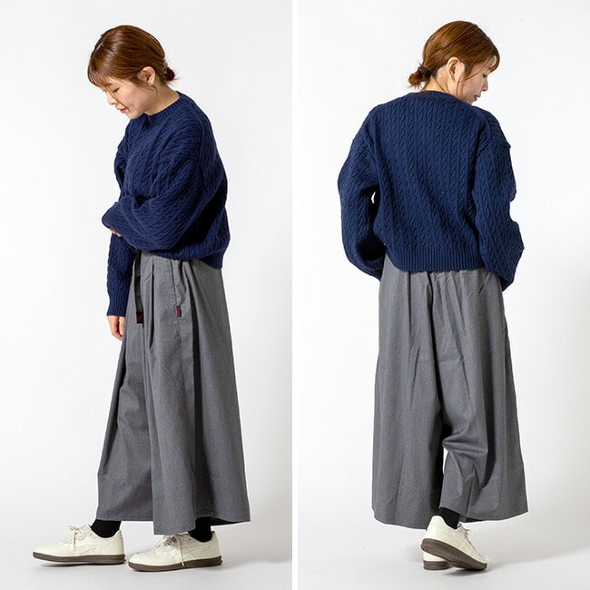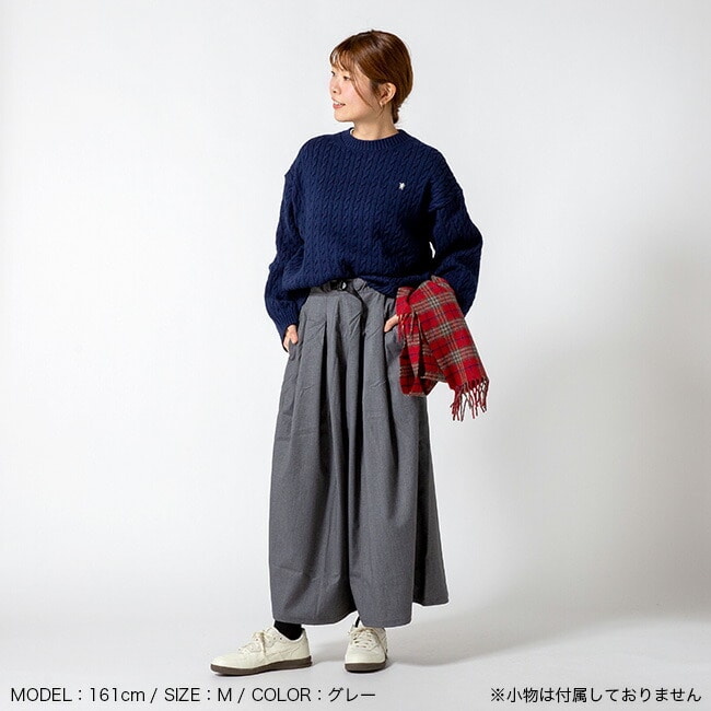 上品で大人っぽい生地感を豊かなフレアで穿きこなせる美しいシルエット。