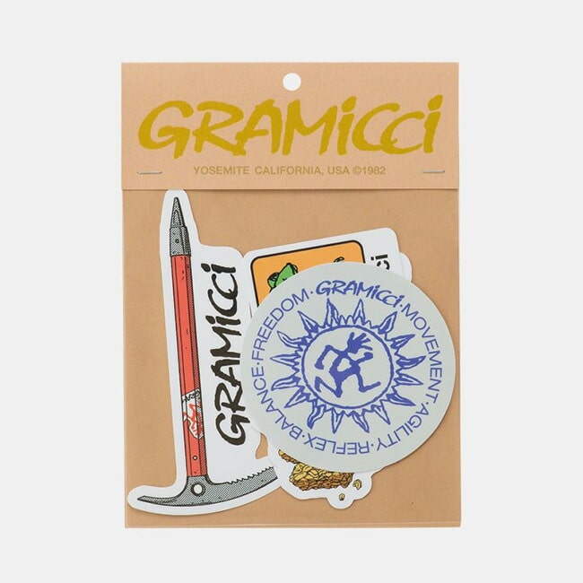 "GRAMICCI"な、ロゴからグラフィックまで多岐にわたるデザインが充実のステッカーは耐水性もあり、様々な場所に使用いただけます。