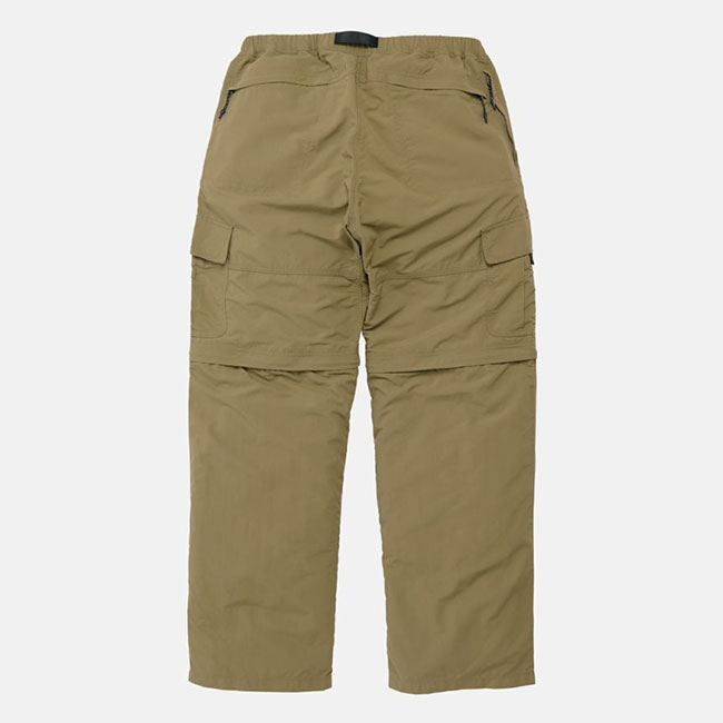 コットンライクな手触りが特徴の、裂けにくく丈夫なリップストップを使用した、ゆとりあるシルエットのカーゴパンツです。膝部分のファスナーによってショーツにもなる2WAY仕様で、7つのポケットを備えています。