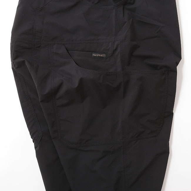 大きくて便利なツールポケットが特徴で、物を落としにくい設計が施されています。後ろポケット内部には小分けポケットも備え、機能性を高めています。