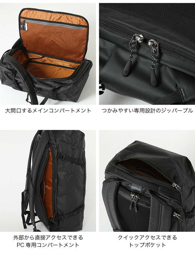 アウトドア用デイパックの要素をすべて備えています。また、整理用ポケット、パネルアクセス、パッド付きノートPCスリーブを搭載した、仕事のできるアシスタントであります。
