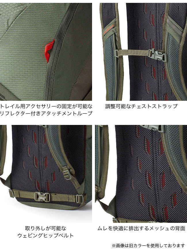 ・ウォーターボトルやその他のトレイル用アクセサリーを固定するためのリフレクター付きアタッチメントループ