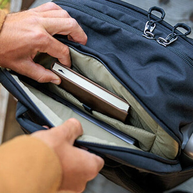 外側からアクセス可能なパッド入りラップトップスリーブに加え、タブレットや書類用の専用スリーブも装備。