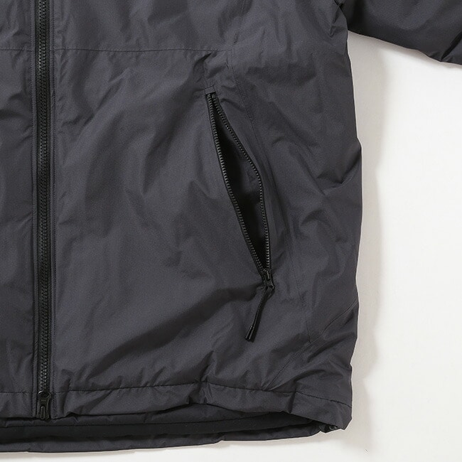 両腰にハンドウォーマー仕様のポケットがあり、左右の内側にもファスナー付きポケットを配置しています。