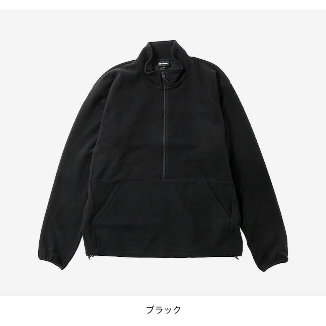 少し長めのハーフジップ仕様で、フロントにはカンガルーポケットを配置。
