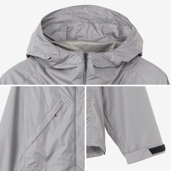 急な天候変化に対応できる、はっ水性を備えたウインドシェルジャケット
