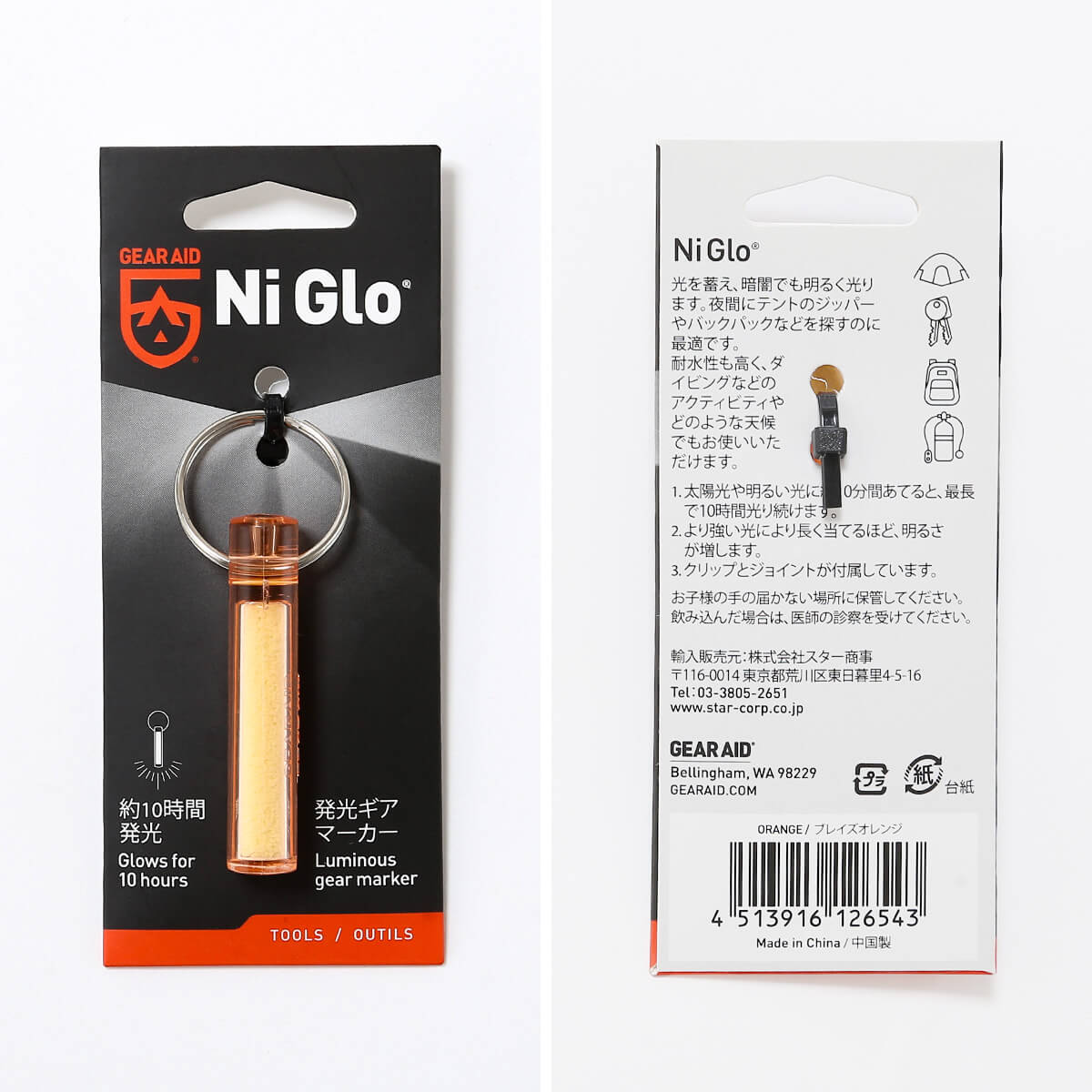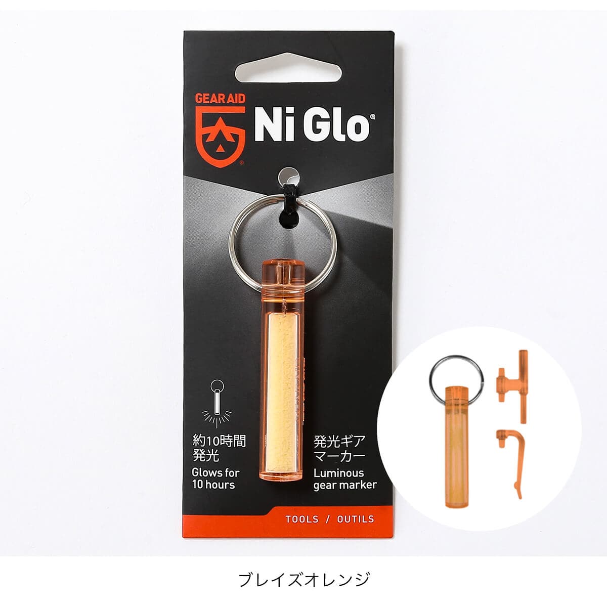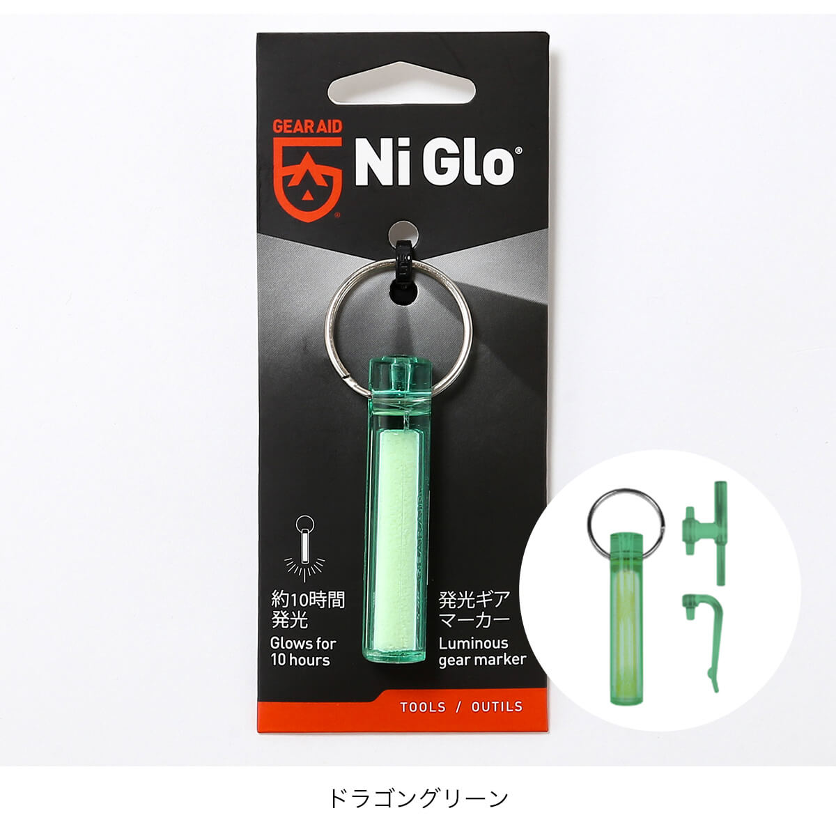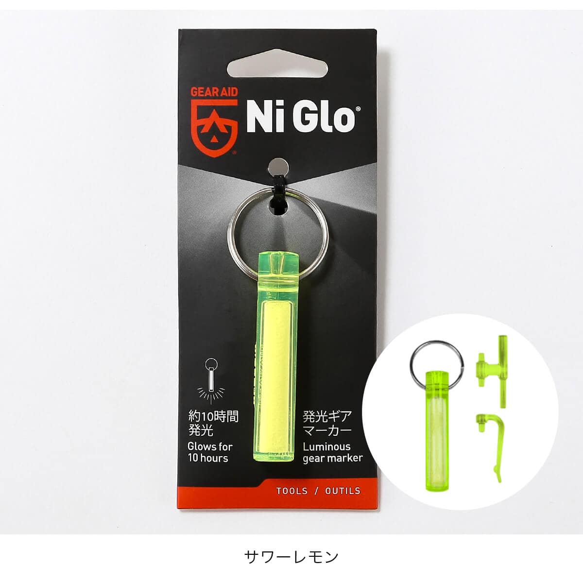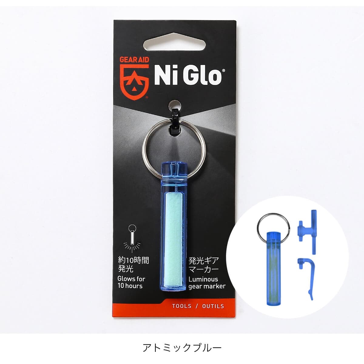 ナイグローは原料のレアアースクリスタルが光ルミセンス(フォトルミセンス)の作用で、光を吸収したあと再放出する働きにより光る今までに無い画期的なアイテムです。キーリング、バックパックやテントのガイラインの目印、スキューバタンクを含むあらゆる種類のアウトドアギアに取り付けて、夜間の目印としてお使いください。