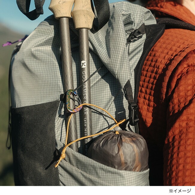 メッシュポケット、ショルダーストラップポケット、ファストベルトポケット部分にはUHMWPE(超高分子量ポリエチレン)Stretch Meshを使用。