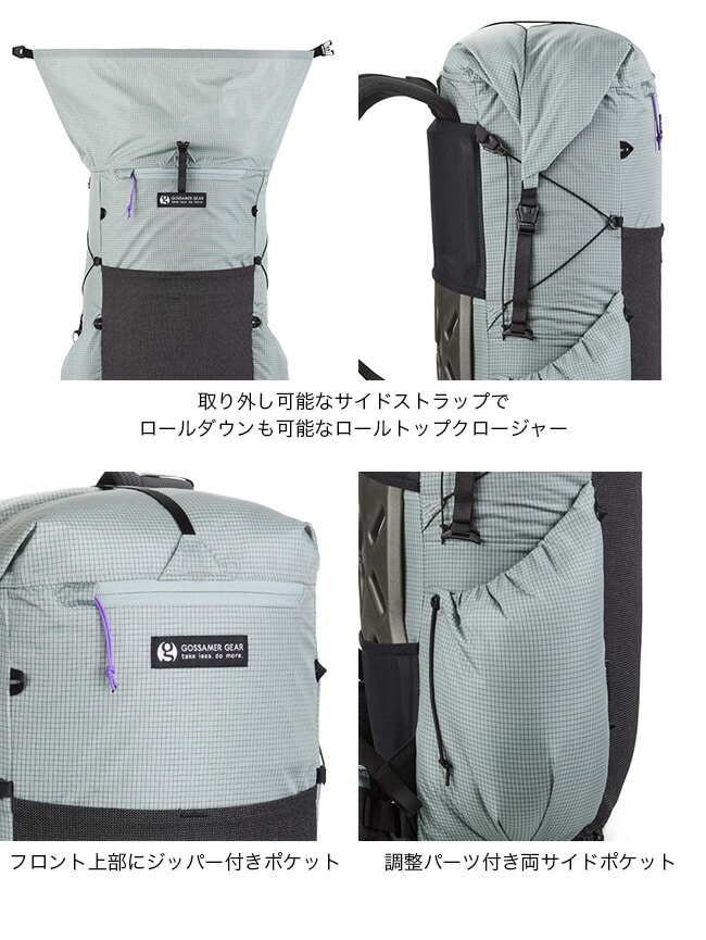 ・取り外し可能なサイドストラップでロールダウンも可能なロールトップクロージャー