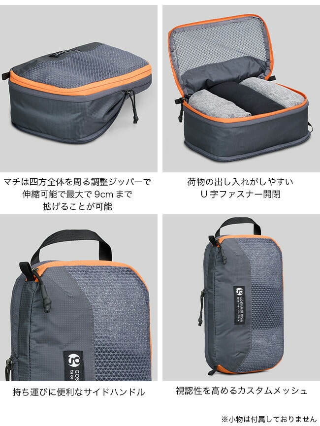パッキングを効率化したい時、服を分けたい時、急遽荷物を増やしたい時など、コンプレッションキューブは頼りになる旅行ツールです。Aero Jetのメインコンパートメントにはフルサイズのコンプレッションキューブを2個、Vagabond Jetには1個、あるいは小さな荷物を整理したい時はこのハーフサイズのコンプレッションキューブを1個収納できます。