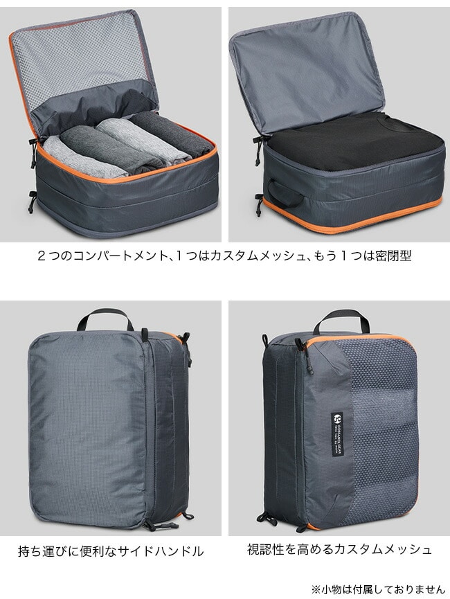 かさばることなく、清潔な衣類と汚れた衣類を分けて収納できるように2つのコンパートに分かれています。カスタムメッシュグリッドが清潔な衣類の視認性と通気性を確保し、Robicナイロン製のサイドポケットがその他の衣類をしっかりと分離します。