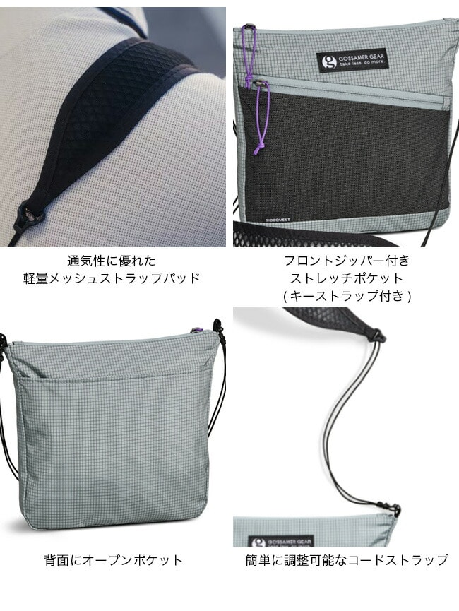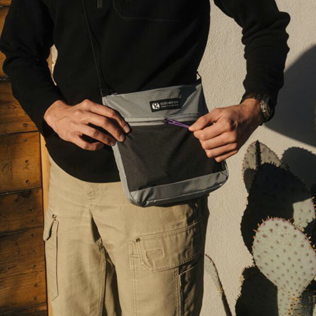GOSSAMER GEAR初となるサコッシュタイプの補助バッグです。開口部はジッパー仕様で、背面にはスリップポケットを装備しています。
