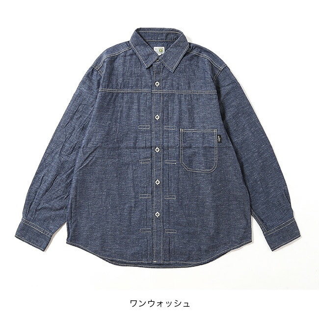 ビンテージワークジャケットのディテールを採用したデザインシャツです。程よいゆとりをもたせたリラックスシルエットで、一枚着としてはもちろん羽織りとしても活用できロングシーズン着用できます。