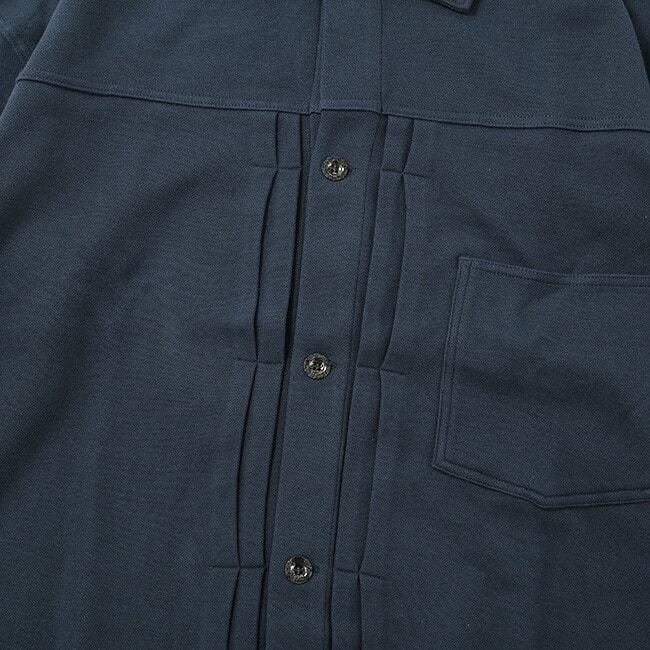 フロントにプリーツ加工が施されているので動きやすさはもちろん、見た目にも立体感が生まれて気分も上がるジャケットです。ふんわりと優しい肌あたりと程よい肉感で、ロングシーズン着用していただけます。