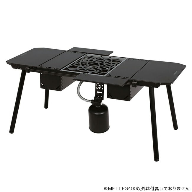 MFT LEG400 はチェアに腰をかけての調理などに適した高さで様々なキャンプギアとも馴染みやすく、ロースタイルをお楽しみ頂けます。本体装着時、脚の形状がハの字になるように設計されており、がたつきが少なくしっかりした安定感があります。