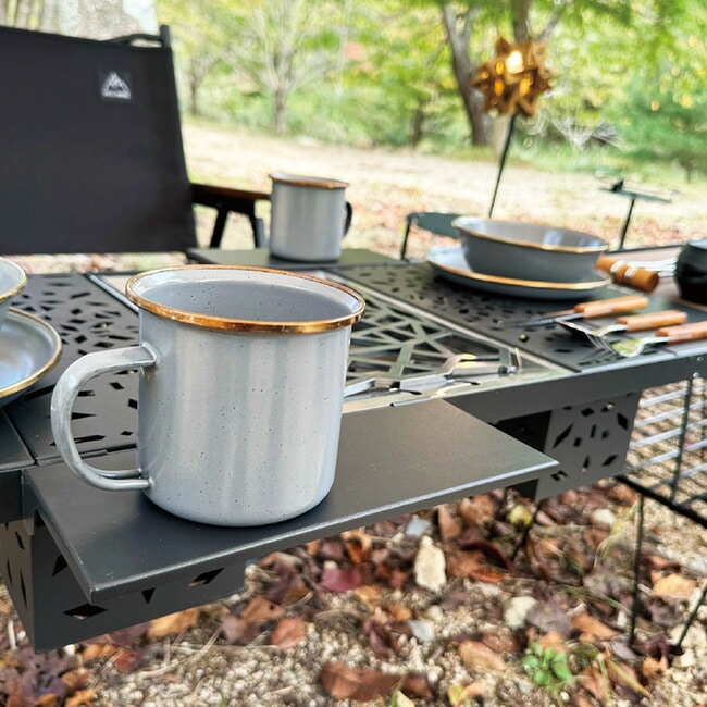 フック式で簡単に脱着が可能です。テーブル本体に取り付ける事で食材や食器を置くスペースを拡張し、より IGT MULTI FLEX TABLE を快適にご使用いただけます。