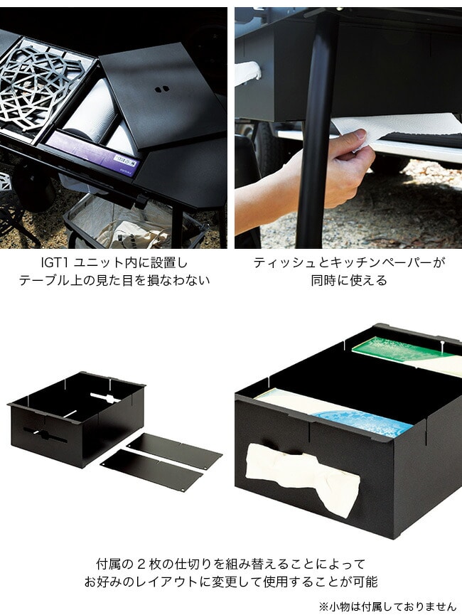 ティッシュとキッチンペーパーがIGT1ユニット内で同時に使える便利なBOX