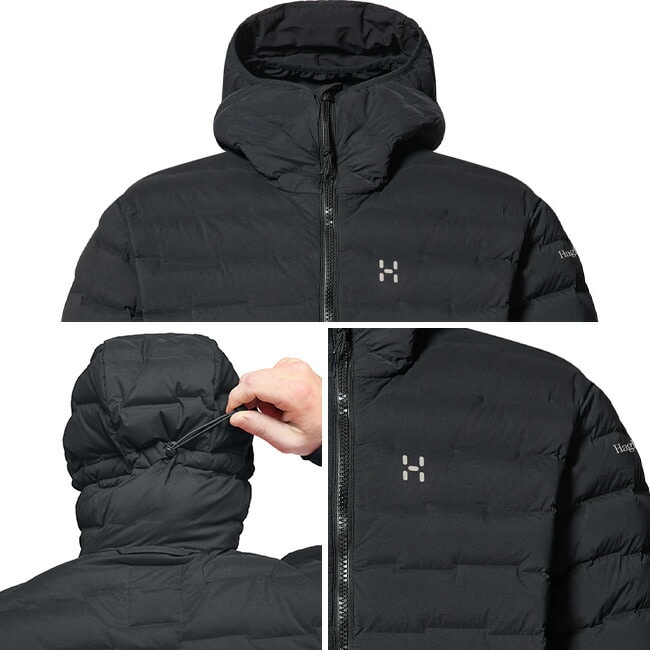 ヘルメット対応のフード部までダウンが封入されており、悪天候時も最大限の暖かさを実現します。
