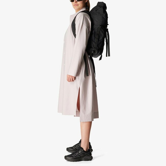 旅行や街歩き、ビーチまで幅広く活躍し、ゆったりとしたリラックス感のあるロング丈のカットが、強い日差しの下でもしっかりと肌をカバーします。タイムレスなデザインとテクニカルな機能性の融合。