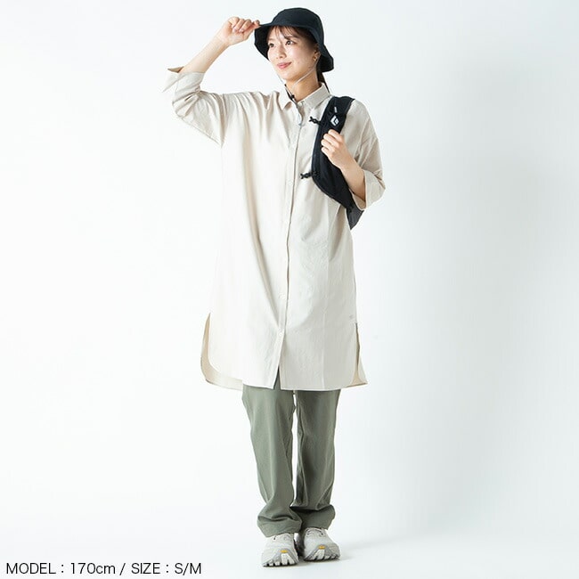コットンのような肌触りのWish Woven™はリサイクルポリエステルから作られた生地で、2ウェイストレッチの柔軟性をもち、透湿性と耐久性も兼ね備えています。さらに化学薬品を使用することなくUPF50+の紫外線保護指数を備え、速乾性にも優れます。