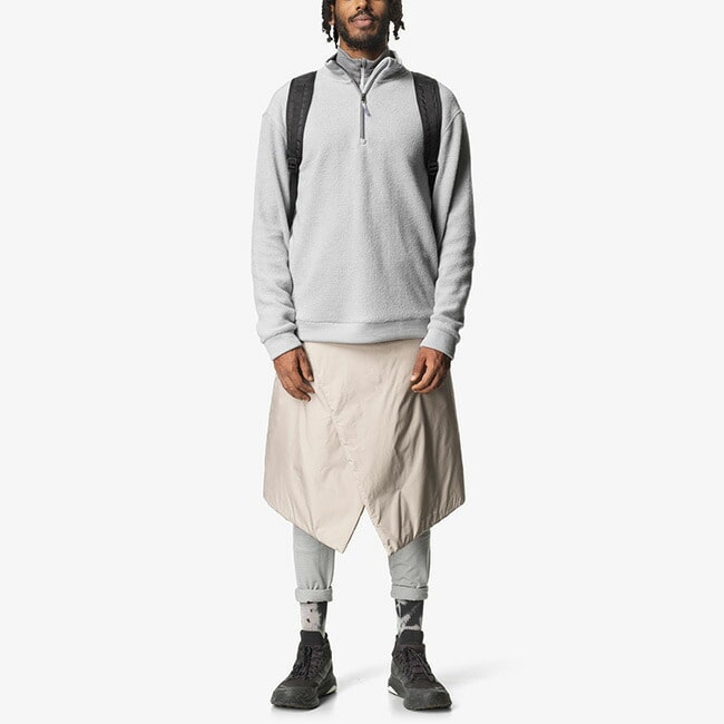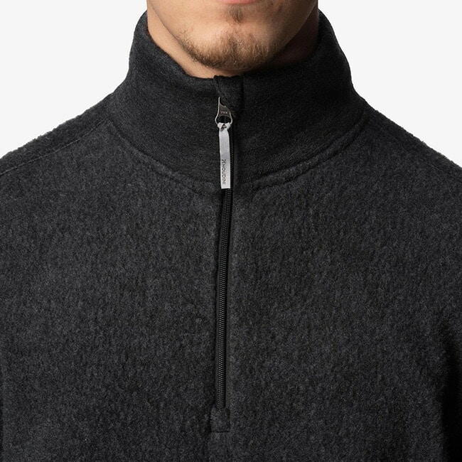 冬のコートやシェルジャケットの下にミッドレイヤーとして着ても優れた保温性を発揮しますが、ジップネック仕様で容易に余分な熱を逃がすことができます。