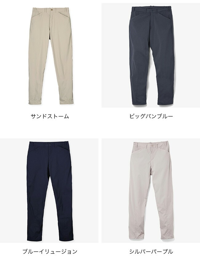 裾に向かって細くなるテーパードのシルエットを採用したレギュラーフィットで、登山やクライミングのアウトドアパンツとしても、日常生活でのライフスタイルウェアとしても幅広いシチュエーションにマッチします。