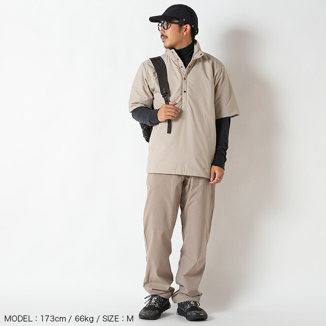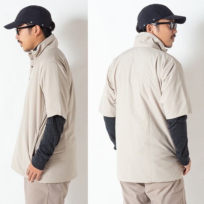 表地は撥水加工が施されたC9 Ripstop™、中綿には軽量で暖かなPrimaLoft® Gold Active+を使用し、優れた透湿性、速乾性、防風性により様々なシーンを快適にしてくれます。ベースレイヤーやミッドレイヤーに重ねれば上半身の主要な部分をカバーすることができ、長袖のインサレーションに比べて軽量でかさばらないことが特徴です。
