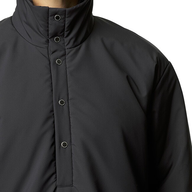 首元にスナップボタンをあしらったTシャツタイプのインサレーション