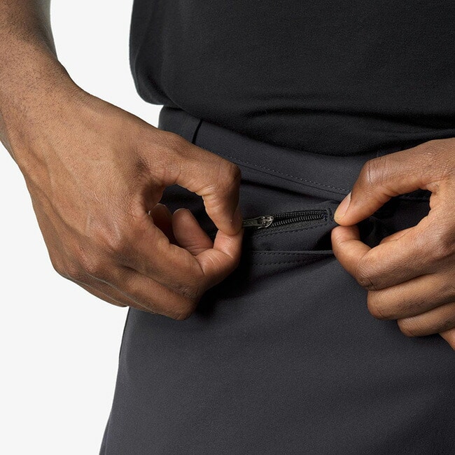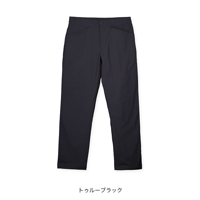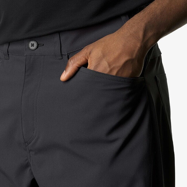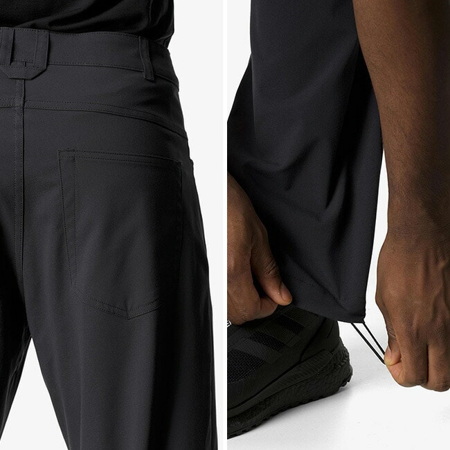 クラシカルなストレートカットと最新の機能的な生地を組み合わせたパンツ