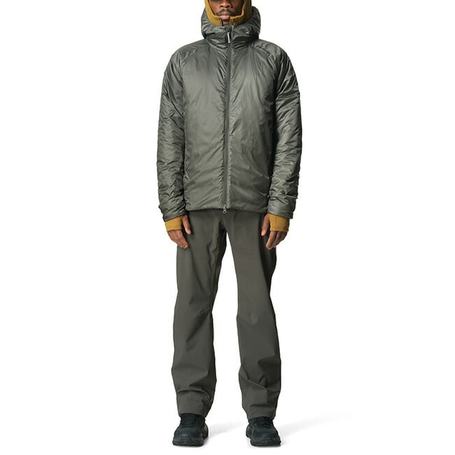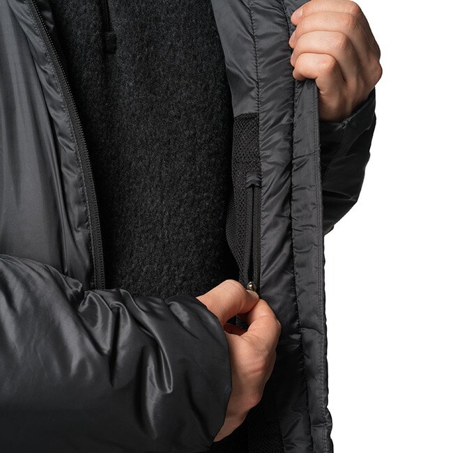 スウェーデン語で「ダウンフリー」を意味するDunfriは、その名の通りダウンやフェザーなど動物性の素材を排し、軽量で暖かく濡れても保温性を損なうことのない、100%リサイクルポリエステル製のPrimaLoft® Gold Insulationを中綿に採用しました。これは合成断熱材のもつ機能的なメリットに加え、Houdiniではアニマルウェルフェアの観点からダウンを使用しないためでもあります。