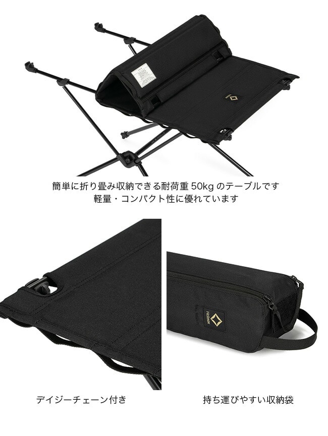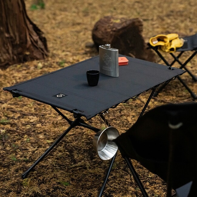 タクティカルテーブルSより、ワンサイズ大きいテーブル。軽量・コンパクト性に優れた持ち運びに便利な折りたたみ式のテーブルです。