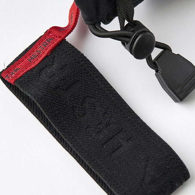 一時的にグローブを外しての作業に便利なハンドカフとカラビナ付きです。