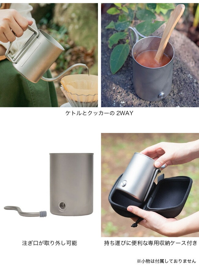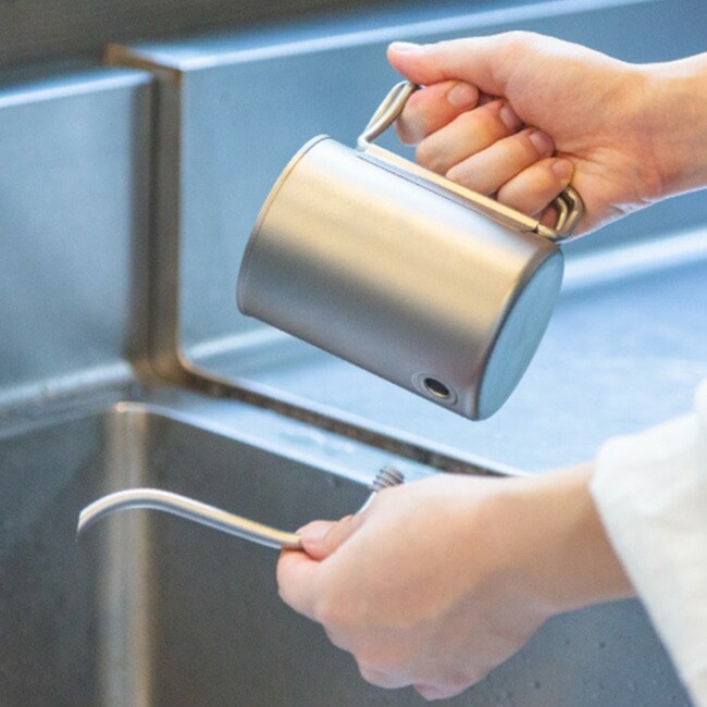 注ぎ口が取り外し可能で、狙ったところにお湯が注ぎやすい、ゆるやかにカーブした細口の注ぎ口が特徴です。持ち運びに便利な専用収納ケース付き。