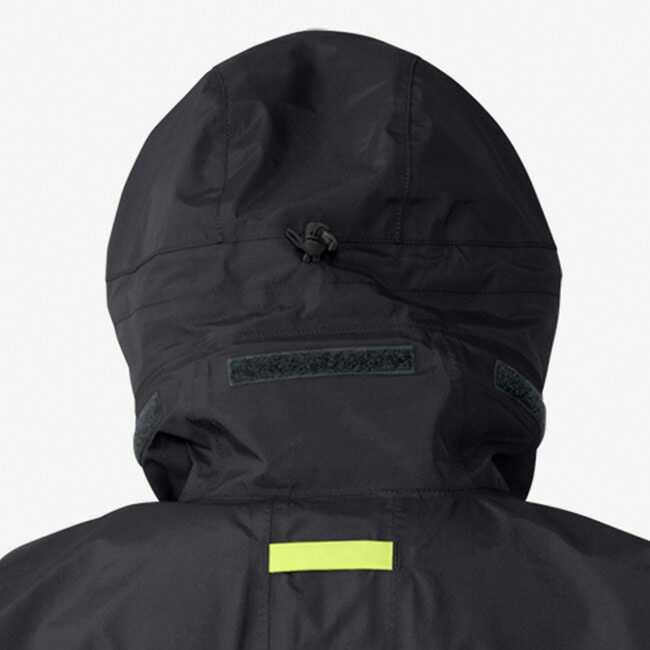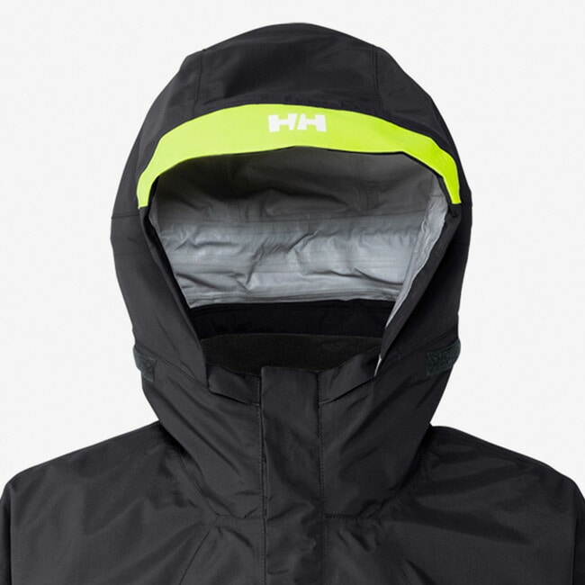 3層構造の生地は、雨天などの過酷な状況下でも高い防水透湿性を誇るヘリーテックプロフェッショナルで、はっ水機能の耐久性も備えているのが特長。裏地には、抗菌防臭加工を施して、快適性を高めています。