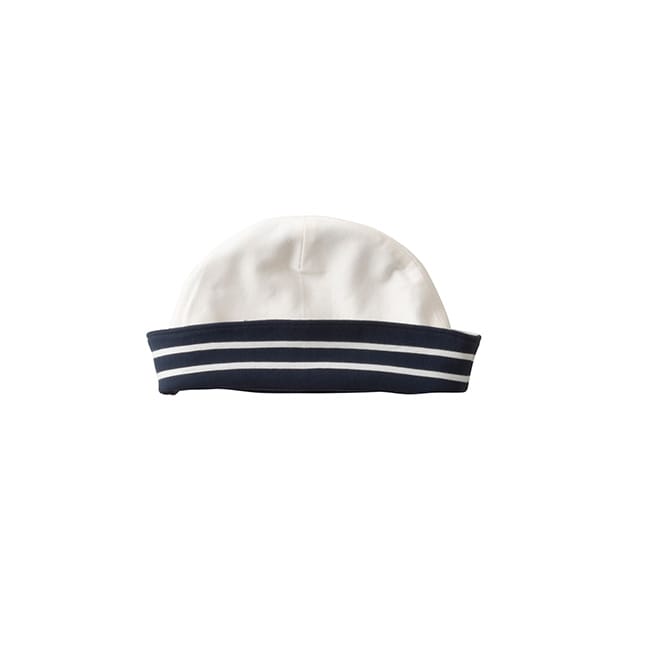 キャップは2WAYで使えるセーラーハットで、つばを立てても折っても被れ、雰囲気を変えて楽しめます。