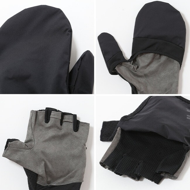 ハーフフィンガーグローブに収納式のフードを搭載したトレイルランニング用グローブ