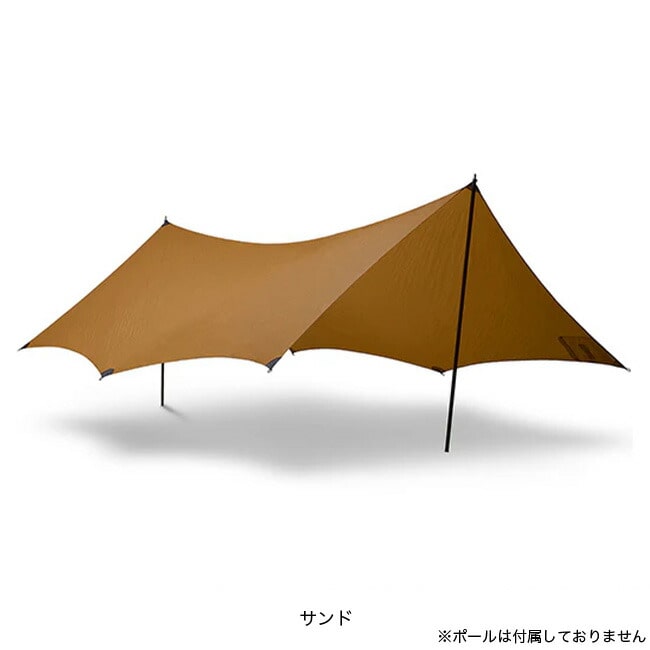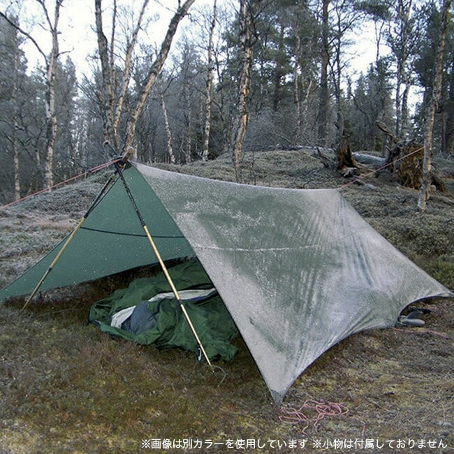 開放感あふれるタープは、天候から身を守りながら偉大な自然の音や香りを五感で感じることができます。素材には一般テント素材の4倍強度がある引き裂き強度1平方メートル当たり12kgを誇るKerlon1200を使い、ドローコード、収納バッグが一体にセットされ、重量は僅か750gです。