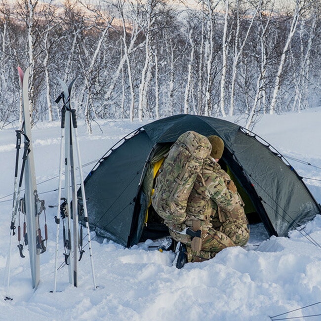 完全に統合された前室により真の自立式構造を実現し、光を遮断するアウターテント生地、黒のガイラインを採用し、反射材を排除することで、優れたステルス性を発揮します。