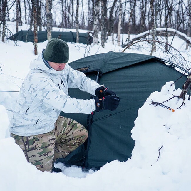 頑丈なSoulo BL Tacticalの連結式インナーテントとアウターテントは、設営が単一のステップで完了するだけでなく、あらゆる条件下で迅速かつ簡単に行え、一人でも暗闇の中でも可能です。